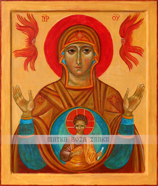Postać Maryi wzorowana jest na XII wiecznej ikonie Wielkiej Panagii z Jarosławia.